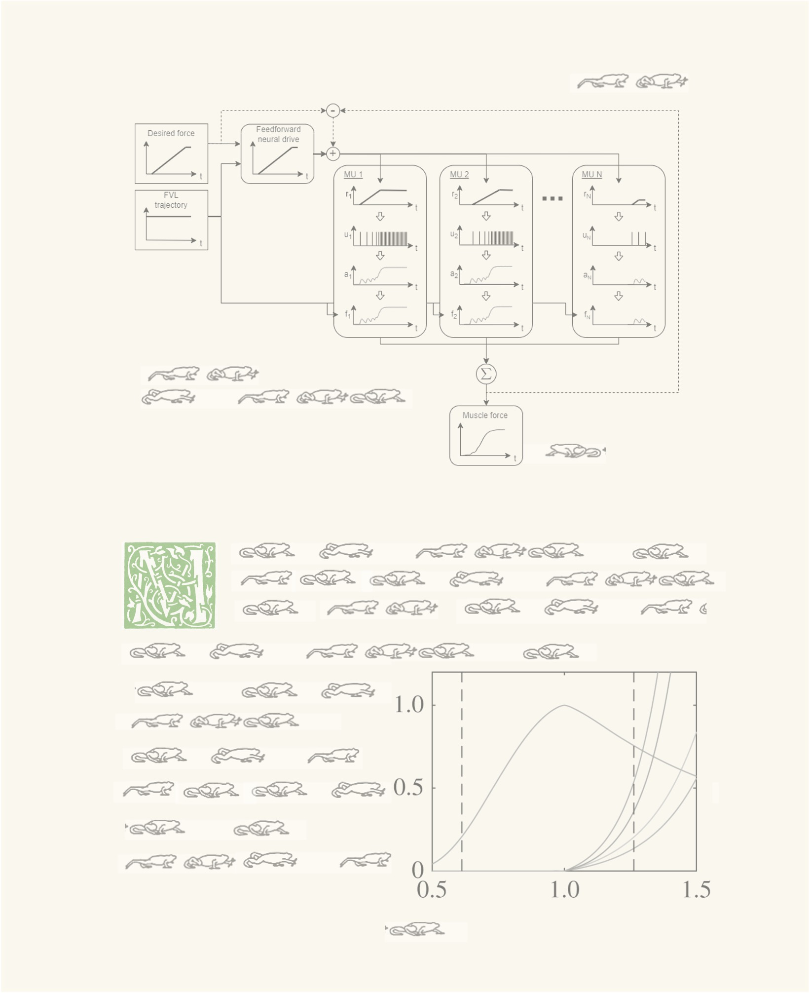 We made a mathematical model to simulate rate-coded control of multiple motor units.